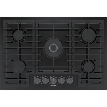Bosch 800 Series 30-Inch Gas Cooktop in black stainless steel with 5 burners