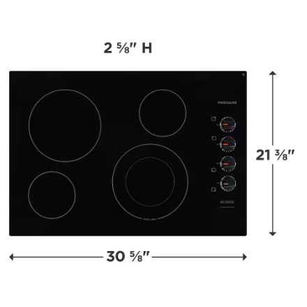 Beautiful Ceramic glass cooktop is easy to clean. Features a powerful 3,000-Watt Quick Boil Element, SpaceWise Expandable Element that expands to accommodate various sizes of cookware, and easy to use ready select controls. With the Frigidaire Fit Promise, we promise that the 30-inch cooktop will fit your existing countertop cutout of the same width and configuration.